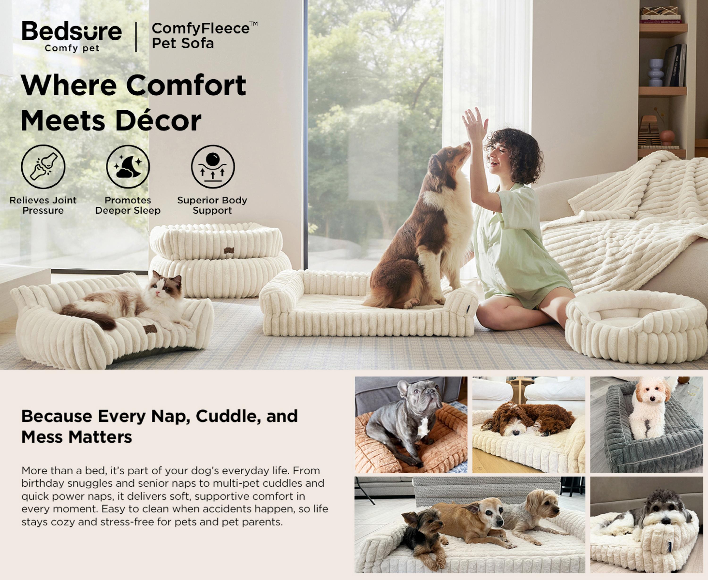 The low-profile structure makes it easy for senior dogs or pets with joint or knee issues to step in. Crafted with luxuriously soft faux fur for year-round comfort, it blends seamlessly into any home décor with stylish corduroy texture and modern neutral colors.